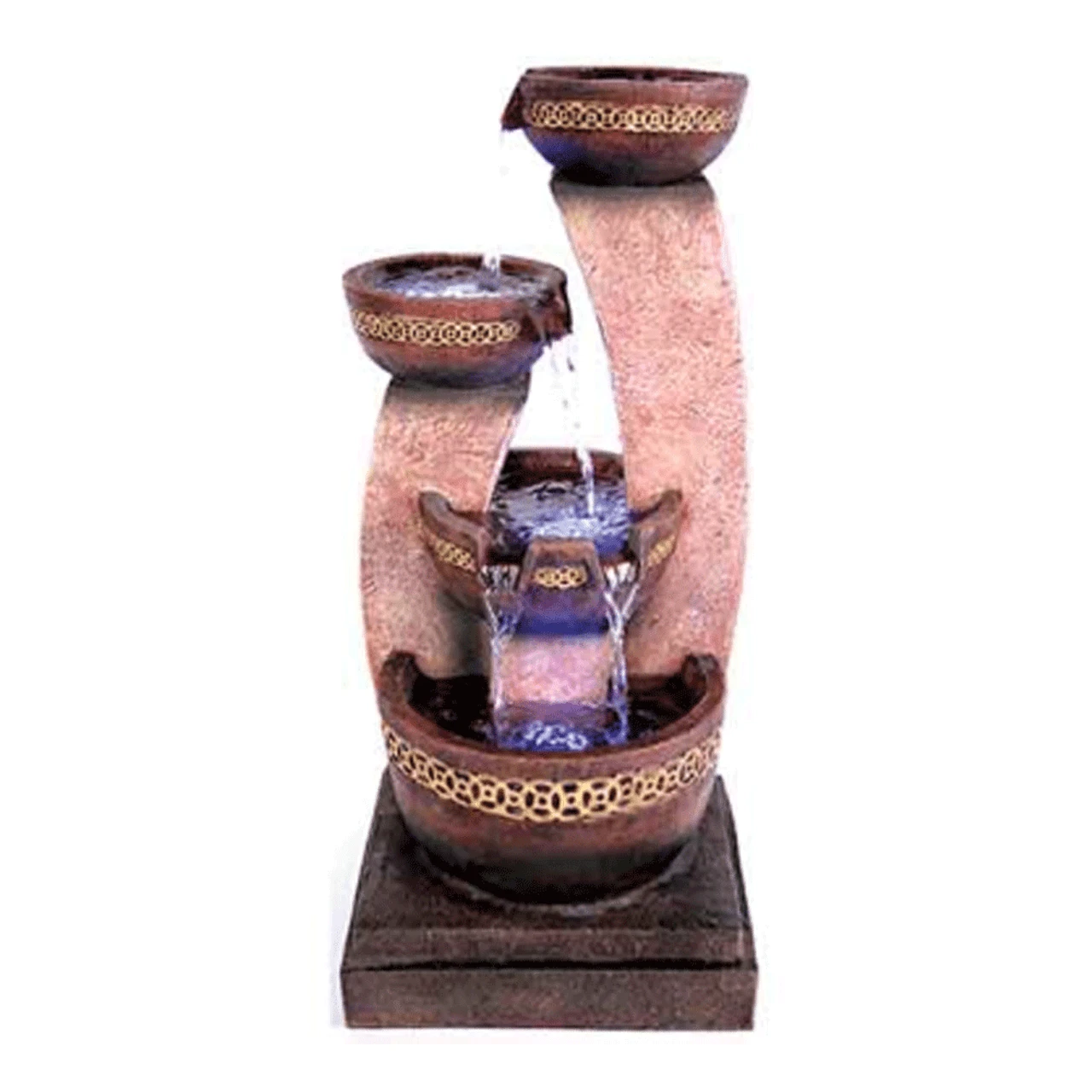 Just add water – No water supply needed, no tools required, just plug it in. Please note, this fountain is hand painted, therefore colour variations will occur. Features: – Includes LED(s) Dimensions: – H550mm x W255mm x D250mm