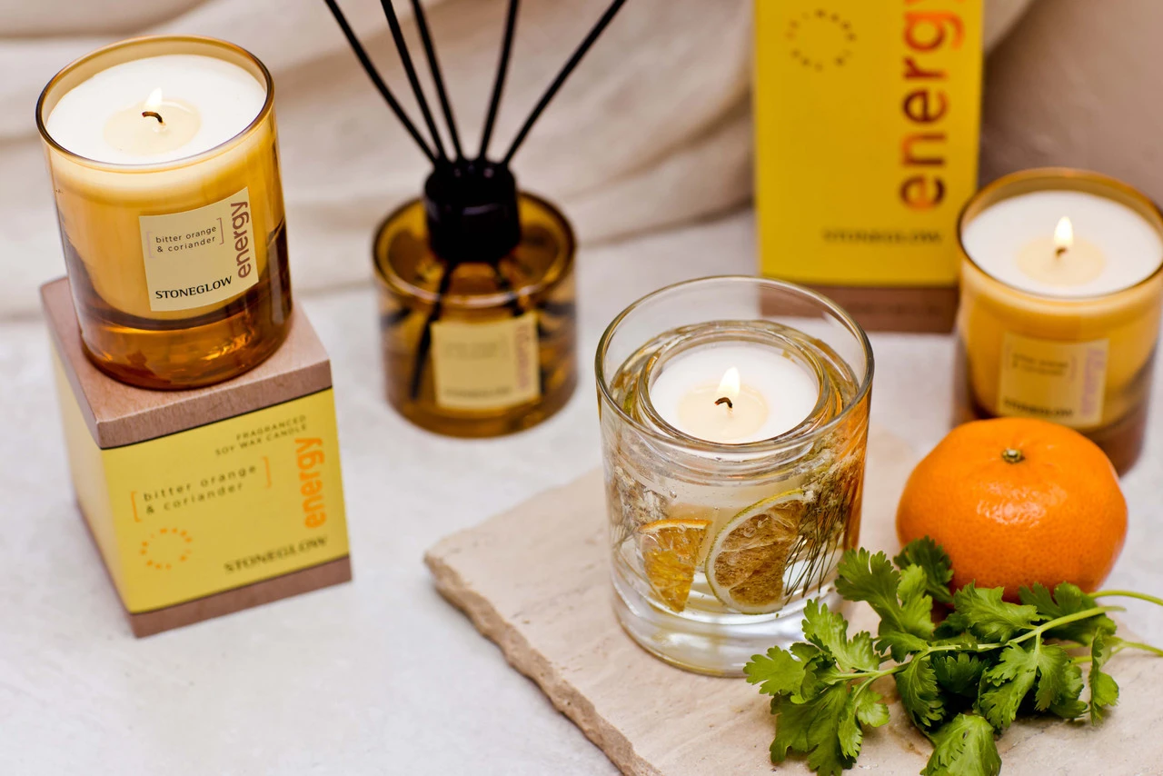 Tangy orange, lemon and lime, with orange blossom and a hint of coriander on a sweet powdery base.